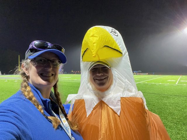 The best part about the game was when my husband decided to put on an inflatable eagle costume and he ran around the field and other areas during half time since we didn’t have a half time show. He was definitely a big hit. Unfortunately the game did not go in our favor, but all in all, it was a good time and it was fun to be a part of the first football game on the new field!