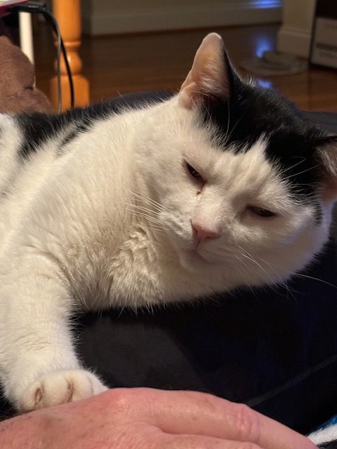 And finally, Regina would like everyone to know that she loves Brian. She puts her paw on his hand to make sure he knows. And she also glares at me when I try to take her picture.