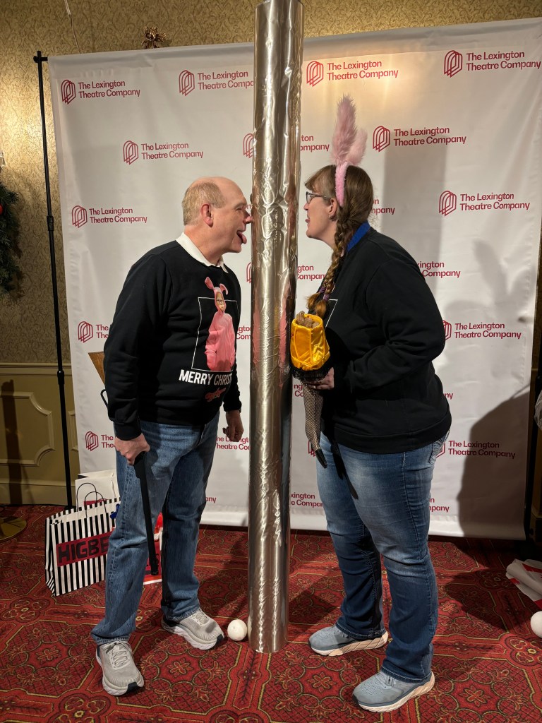 On Friday night, we went to go see the Lexington Theater Company’s production of A Christmas Story: The Musical. It was a fun show and we really enjoyed it. We were not familiar with any of the songs, so we were able to enjoy the lyrics for the very first time while watching the production. They had props you could post with before you went into the theater, so of course we had to use the pole for a picture. I triple dog dare you!