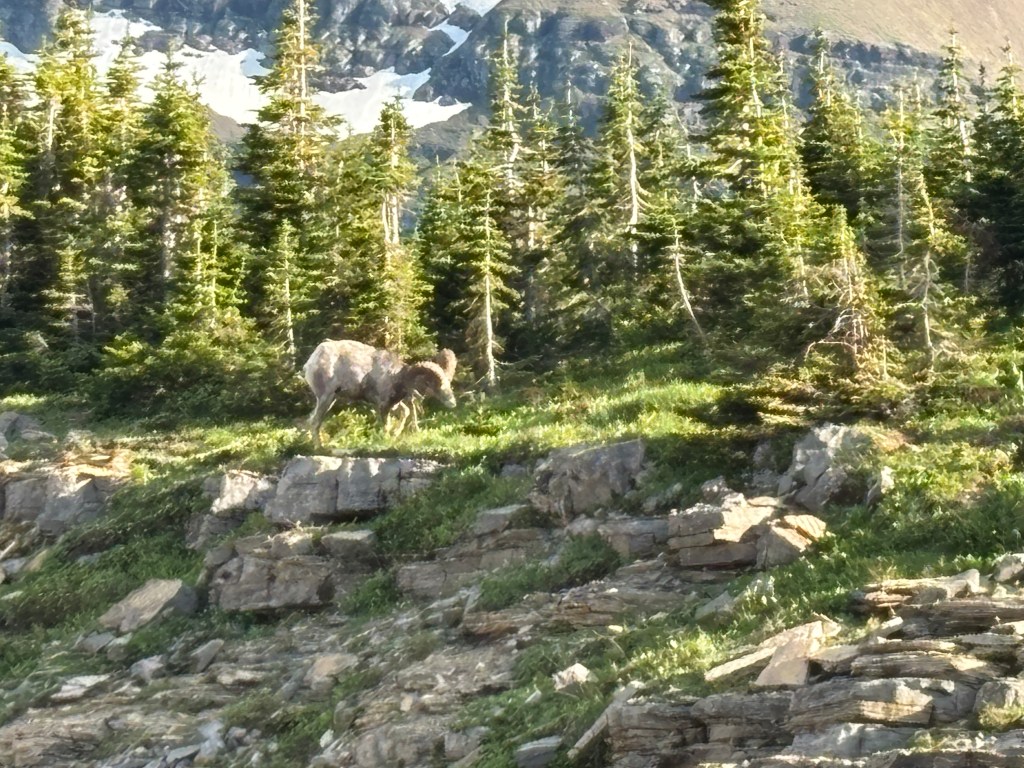 We even got to see some wildlife. We saw a dot in the distance that we were told was a grizzly bear. The park had shut down several trails that are normally quite popular because a mama bear had cubs and was frequenting that area which led to an extra risk. But, we also saw moose, big horn sheep, mountain goats, deer, marmots, and many varieties of birds.